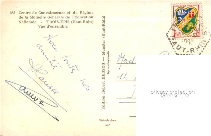 13608185 carte postale Trois Epis Haut Rhin Elsass Centre de Convalescence et de Régime de la Mutuelle Generale de l’Education Nationale postalisch gelaufen Erhaltung siehe scans [FriedD77] KatCode: 11170068568005