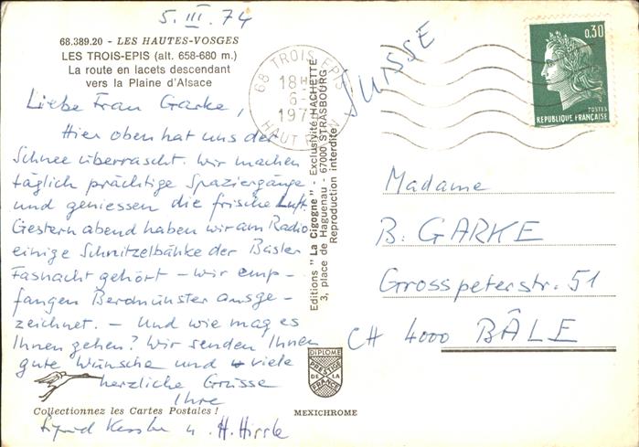 Trois Epis Haut Rhin Elsass Route en lacets descendant vers la Plai