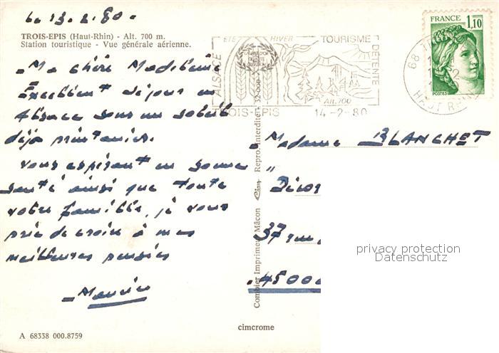 carte postale Trois Epis Haut Rhin Elsass Vue aérienne postalisch gelaufen Erhaltung siehe scans [FriedD77]