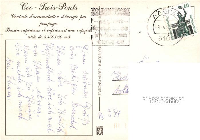 73358844 carte postale Trois Ponts Centrale d’accumulation d’energie par pompage Bassins superieurs et inferieur postalisch gelaufen Erhaltung siehe scans [WerneD78] KatCode: 11070061007829