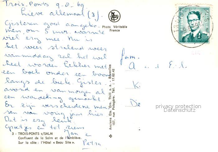 72936476 carte postale Trois Ponts Confluent de la Salm et de l’Ambleve Hotel Beau Site postalisch gelaufen Erhaltung siehe scans [FriedD77] KatCode: 11070061007829