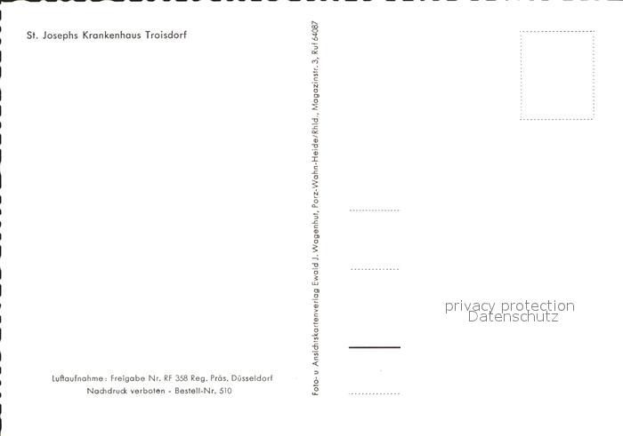 72127581 Troisdorf Fliegeraufnahme St. Josephs Krankenhaus postalisch nicht gelaufen Erhaltung siehe scans KatCode: 11110005382068