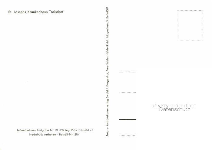 72686507 Troisdorf Fliegeraufnahme St. Josephs Krankenhaus postalisch nicht gelaufen Erhaltung siehe scans [LiesaD40] KatCode: 11110005382068
