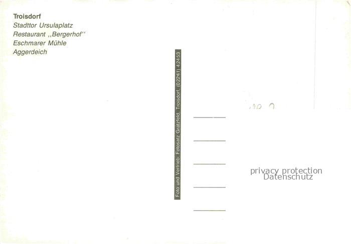 74037985 Troisdorf Stadttor Ursulaplatz Restaurant Bergerhof Eschmarer Muehle Aggerdeich postalisch nicht gelaufen Erhaltung siehe scans [FriedD77] KatCode: 11110005382068