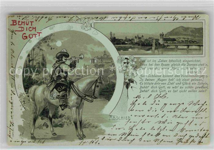 alte Postkarte Trompeter Scheffel Abschied Bad Saeckingen Gedicht Litho postalisch gelaufen Erhaltung siehe scans [PaolaD17]