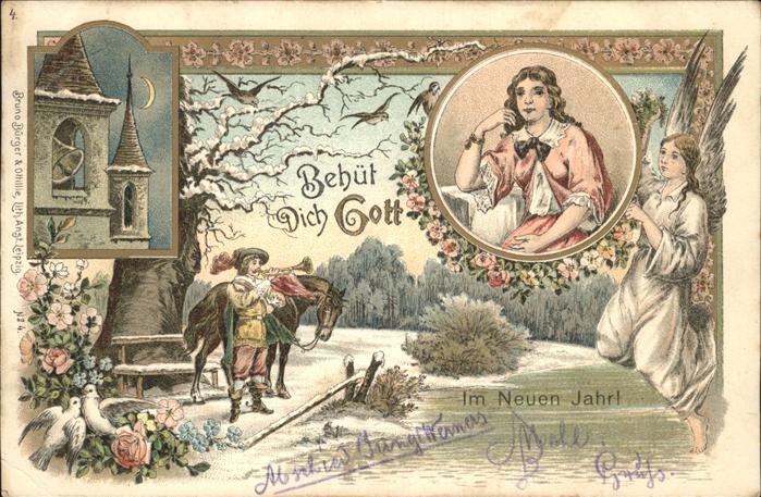 11373312 Trompeter Scheffel Neujahr Engel Pferd Tauben KatCode 22340000000500