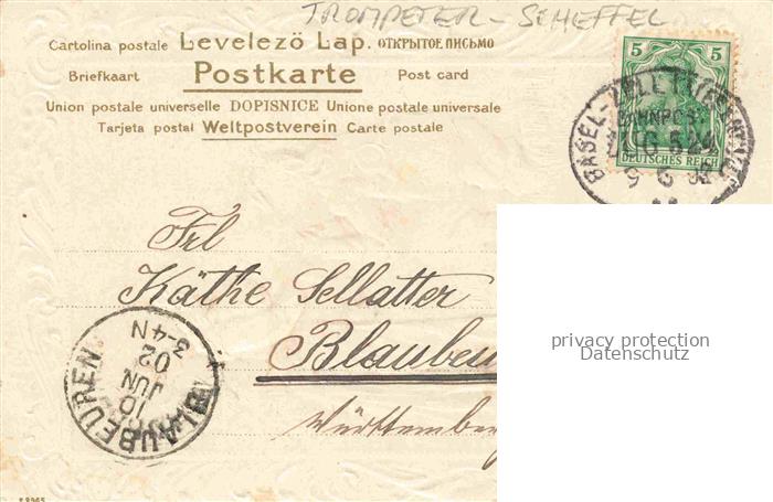 74086179 alte Postkarte Trompeter von Saeckingen SCHEFFEL Waldfest Litho postalisch gelaufen Erhaltung siehe scans [IrynaD87] KatCode: 22340000000500