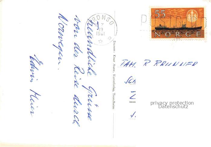74130781 old postcard Tromso Norge Parti fra byen med Roald Amundsens statue postalisch gelaufen Erhaltung siehe scans [WerneD78] KatCode: 11380