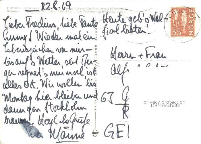 old postcard Trondheim Kathedrale Hafen postalisch gelaufen Erhaltung siehe scans