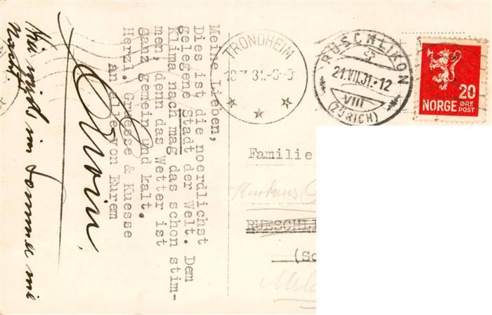 old postcard Trondhjem Norge Ovre Elvehavn postalisch gelaufen Erhaltung siehe scans [FriedD77]