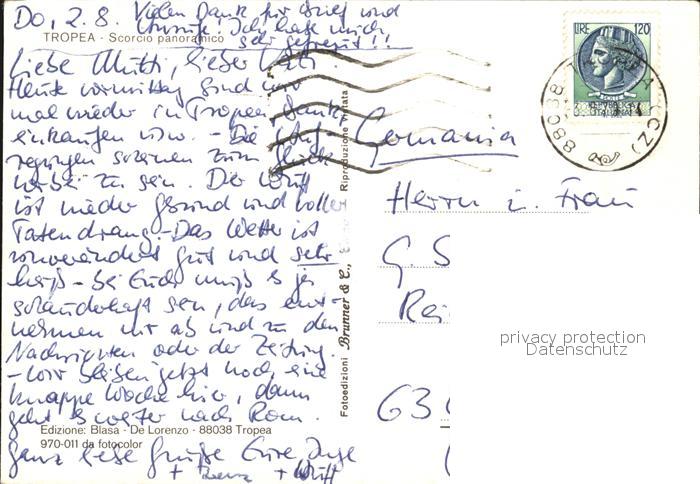 old postcard Tropea Scorcio panoramico Kueste Felsen postalisch gelaufen Erhaltung siehe scans