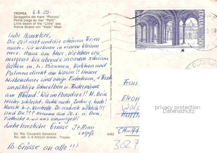 old postcard Tropea Spiaggetta del mare Piccolo Strand postalisch gelaufen Erhaltung siehe scans [FriedD77]