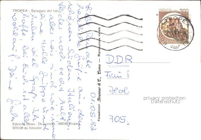 old postcard Tropea Spiaggia del Lido postalisch gelaufen Erhaltung siehe scans