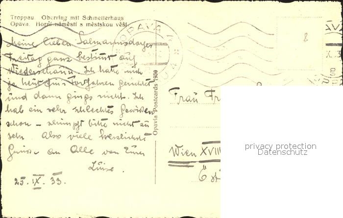 11973228 old postcard Troppau Sudetengau Oberring mit Schmetterhaus postalisch gelaufen Erhaltung siehe scans KatCode: 11520