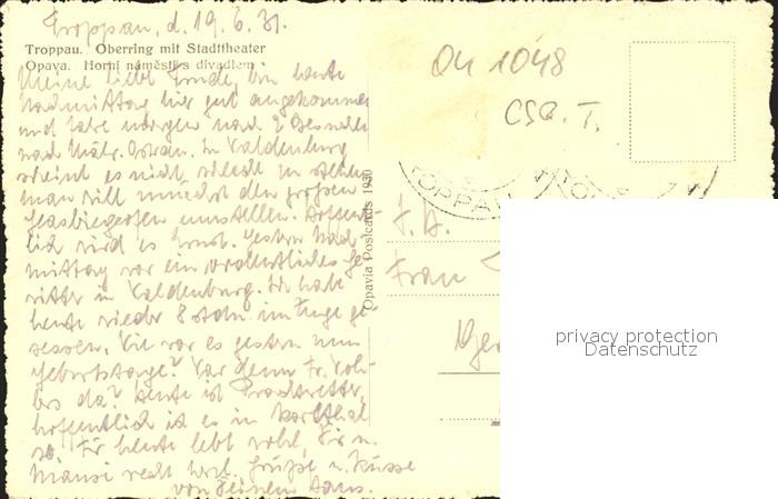 12155902 old postcard Troppau Sudetengau Oberring mit Stadttheater postalisch gelaufen Erhaltung siehe scans KatCode: 11520