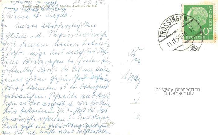 74137010 alte Postkarte Trossingen Martin Luther Kirche Kanzel postalisch gelaufen Erhaltung siehe scans [WerneD78] KatCode: 11110008327049