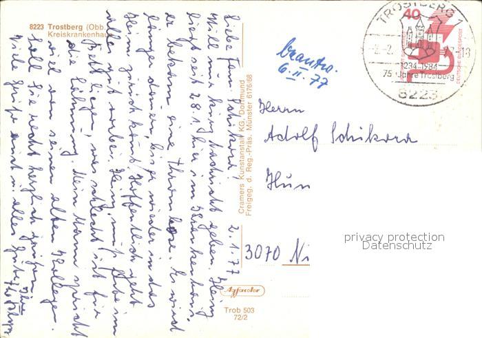 72221884 alte Postkarte Trostberg Keriskrankenhaus postalisch gelaufen Erhaltung siehe scans KatCode: 11110009189157