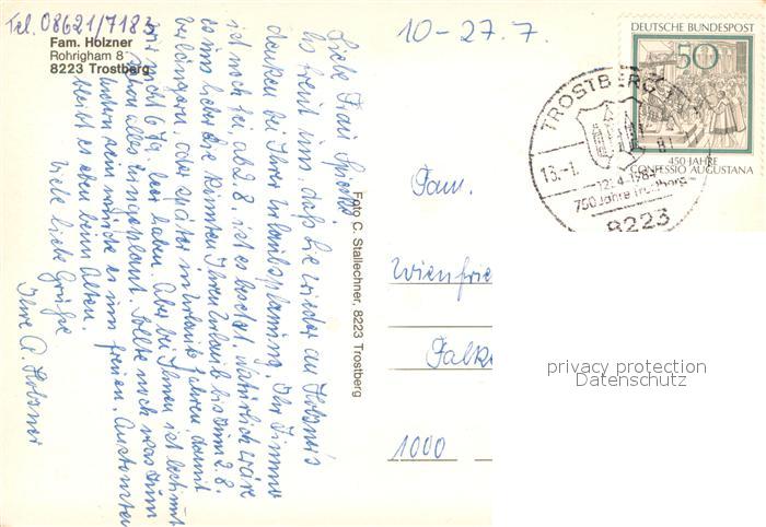 73647646 alte Postkarte Trostberg Pension Fam Holzner postalisch gelaufen Erhaltung siehe scans [WerneD78] KatCode: 11110009189157
