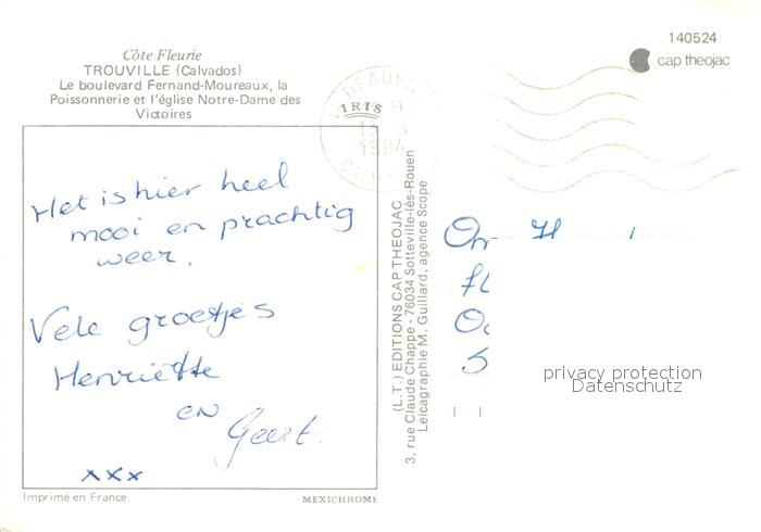 13059199 carte postale Trouville-Deauville Boulevard Fernand Moureaux la Poissonnerie et eglise Notre Dame des Victoires postalisch gelaufen Erhaltung siehe scans [WerneD78] KatCode: 11170014314715