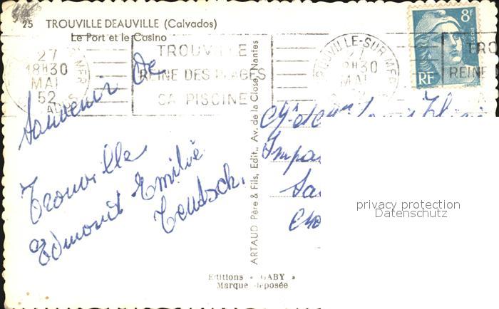 12434933 carte postale Trouville-sur-Mer Hafen Casino postalisch gelaufen Erhaltung siehe scans KatCode: 11170014314715