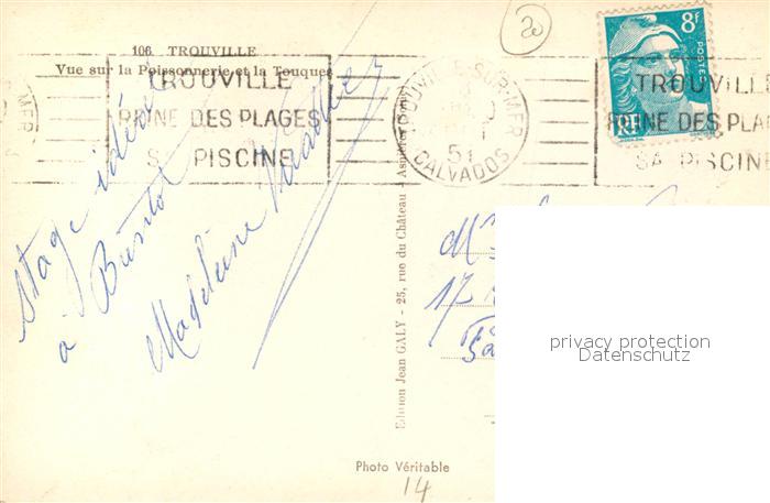 13494543 carte postale Trouville-sur-Mer Vue sur la Poissonnerie et la Touques postalisch gelaufen Erhaltung siehe scans [FriedD77] KatCode: 11170014314715