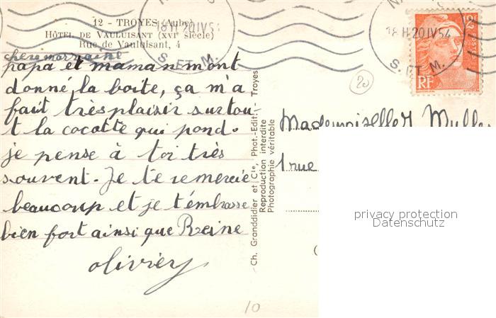 13493726 carte postale Troyes Aube Hotel de Vauluisant Rue de Vauluisant postalisch gelaufen Erhaltung siehe scans [WerneD78] KatCode: 11170010310387