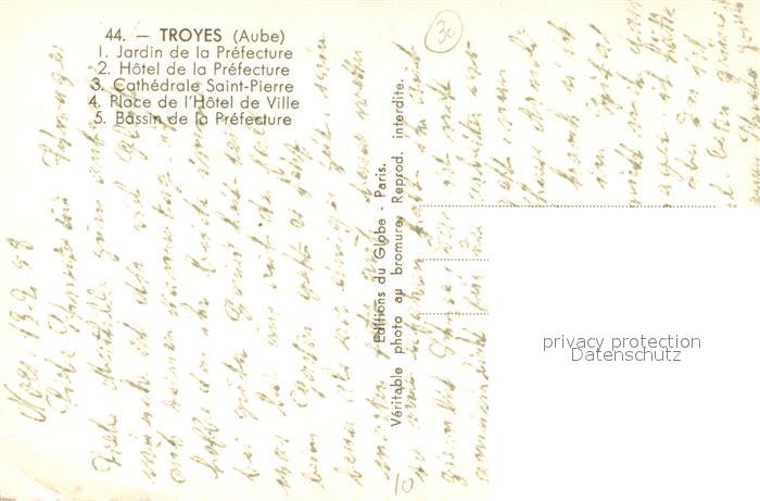 13493926 Troyes Aube Jardin et Hotel de la Prefecture Place de Hotel de Ville Bassin de la Prefecture postalisch nicht gelaufen Erhaltung siehe scans [WerneD78] KatCode: 11170010310387