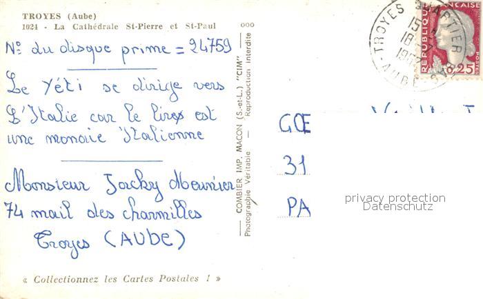 13534774 carte postale Troyes Aube La Cathedrale St Pierre et St Paul postalisch gelaufen Erhaltung siehe scans [WerneD78] KatCode: 11170010310387