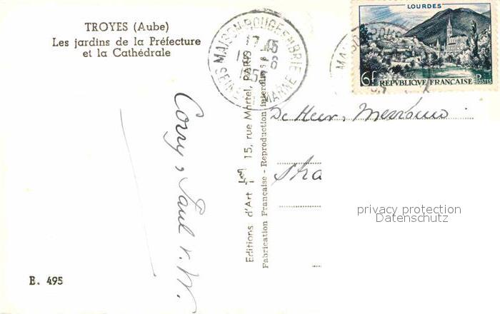 12821098 carte postale Troyes Aube Stadtpark Kathedrale postalisch gelaufen Erhaltung siehe scans [AndreD76] KatCode: 11170010310387
