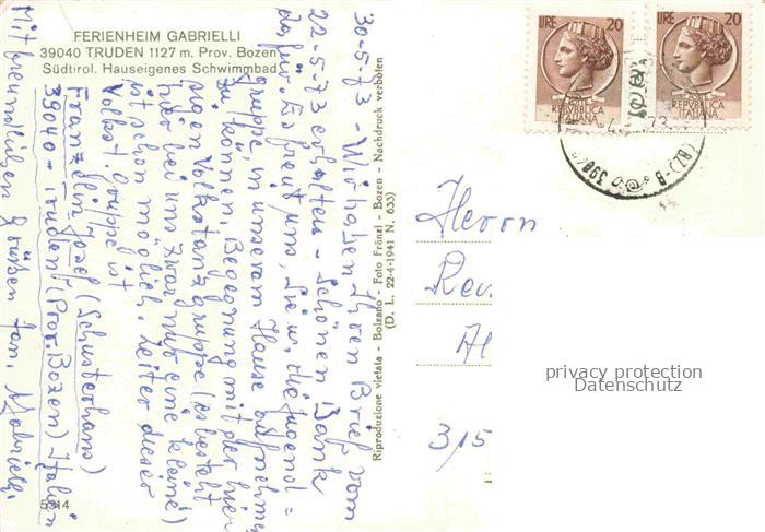 74079637 old postcard Truden Trodena BOLZANO Suedtirol IT Ferienheim Gabriella Schwimmbad Panorama postalisch gelaufen Erhaltung siehe scans [WerneD78] KatCode: 11240