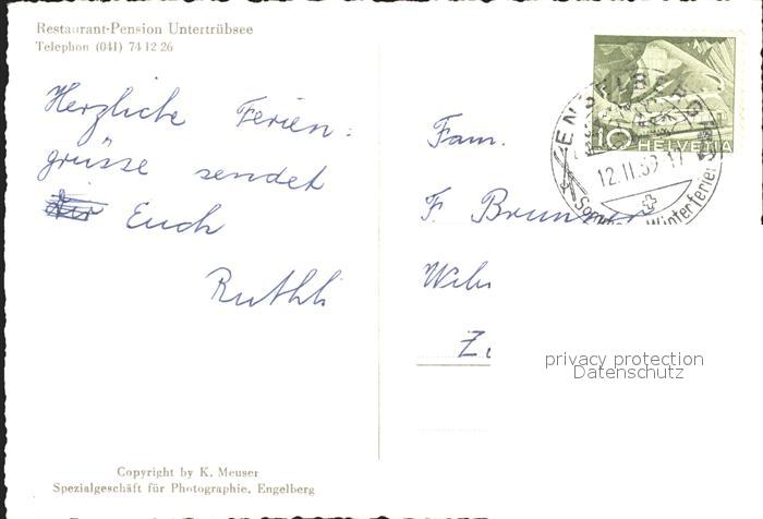 11627618 alte Postkarte Truebsee OW Restaurant Pension Untertruebsee postalisch gelaufen Erhaltung siehe scans KatCode: 11470150440294