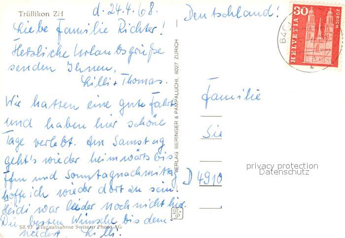33477372 alte Postkarte Truellikon ZH Fliegeraufnahme postalisch gelaufen Erhaltung siehe scans [LiesaD40] KatCode: 11470260865126
