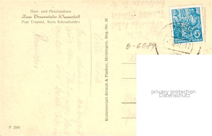 43369367 alte Postkarte Trusetal Gasthaus Pension Zum Trusentaler Wasserfall postalisch gelaufen Erhaltung siehe scans [FriedD77] KatCode: 11110016066074
