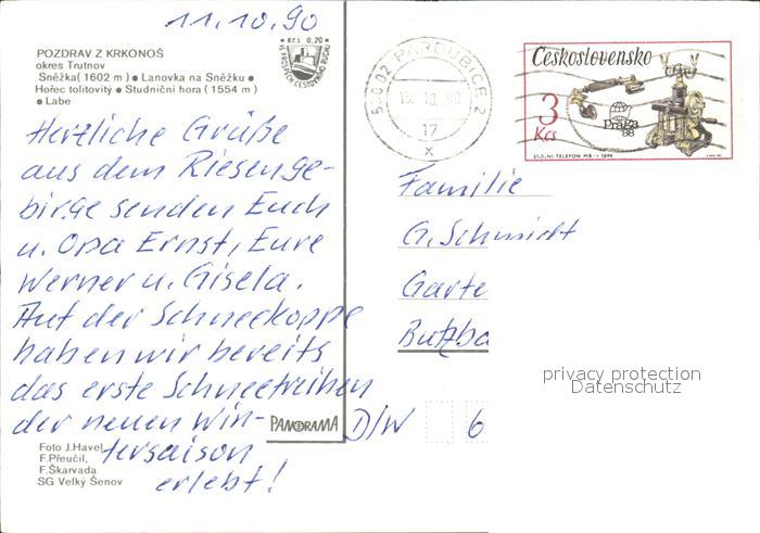 old postcard Trutnov Krkonos Wanderweg Riesengebirge Sessellift Pflanzen Wegweiser postalisch gelaufen Erhaltung siehe scans