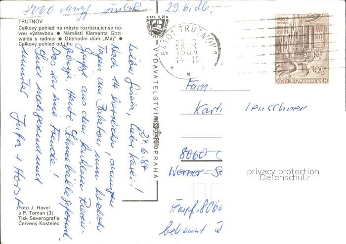 old postcard Trutnov Panorama Platz Kaufhaus postalisch gelaufen Erhaltung siehe scans