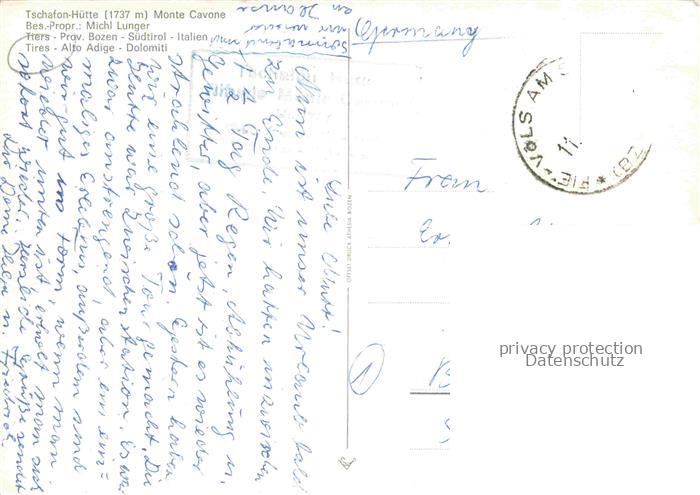 74156433 old postcard Tschafonhuette Tschafonhuette Monte-Cavone Dolomiten Berghuette Almhuette Felsen Wald Wiese postalisch gelaufen Erhaltung siehe scans [Karloger] KatCode: 11240