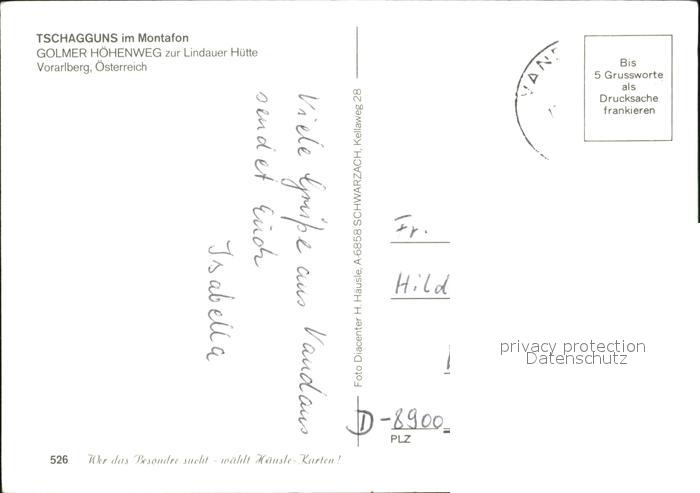 72438107 alte Postkarte Tschagguns Vorarlberg Golmer Hoehenweg Lindauer Huette Grueneck postalisch gelaufen Erhaltung siehe scans KatCode: 11390341080128