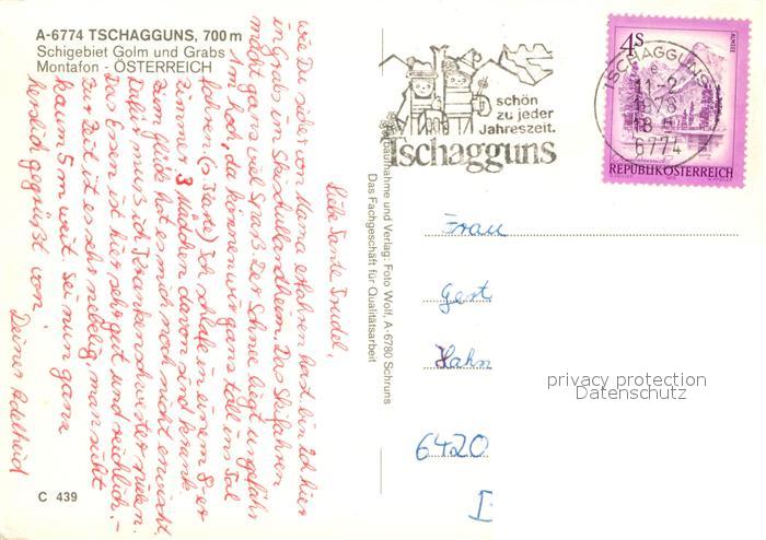 73001094 alte Postkarte Tschagguns Vorarlberg Panorama Skigebiet Golm Grabs postalisch gelaufen Erhaltung siehe scans [AndreD76] KatCode: 11390341080128