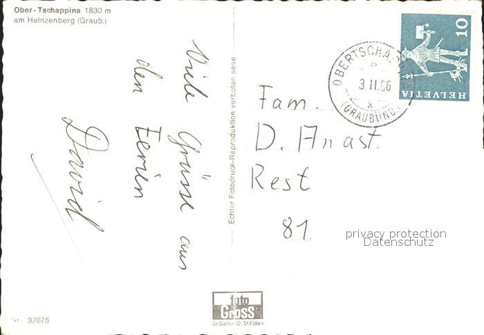 11645309 alte Postkarte Tschappina Graubuenden Ober-Tschappina Heinzenberg postalisch gelaufen Erhaltung siehe scans KatCode: 11470100315104