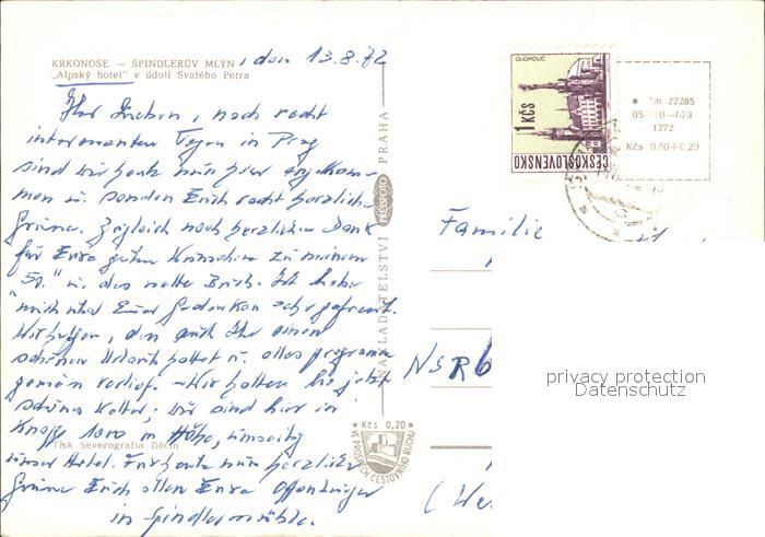 old postcard Tschechische Republik Apsky Hotel postalisch gelaufen Erhaltung siehe scans