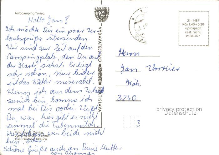 old postcard Tschechische Republik autocamp Turiec postalisch gelaufen Erhaltung siehe scans