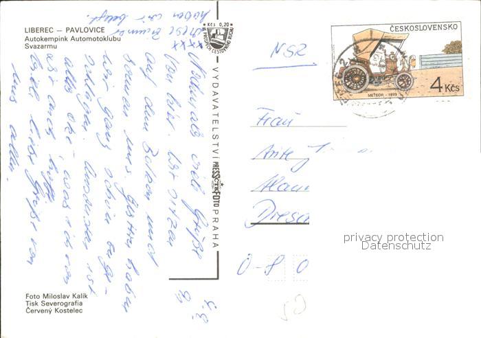 old postcard Tschechische Republik Autocamping Pavlovice postalisch gelaufen Erhaltung siehe scans