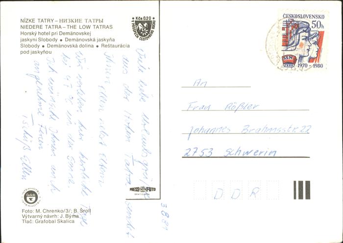 old postcard Tschechische Republik Inter Hotel Demaenovska Dolina postalisch gelaufen Erhaltung siehe scans