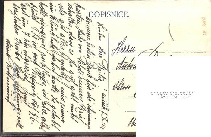 old postcard Tschechische Republik Mnisku postalisch gelaufen