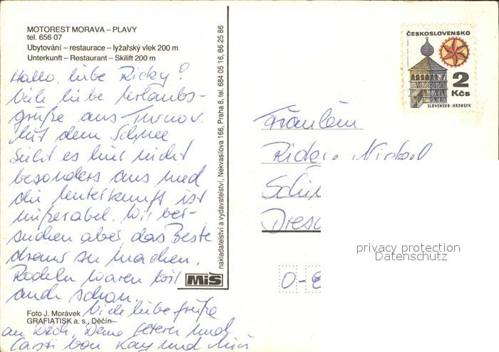 Tschechische Republik Motorest Morava Plavy postalisch nicht gelaufen Erhaltung siehe scans