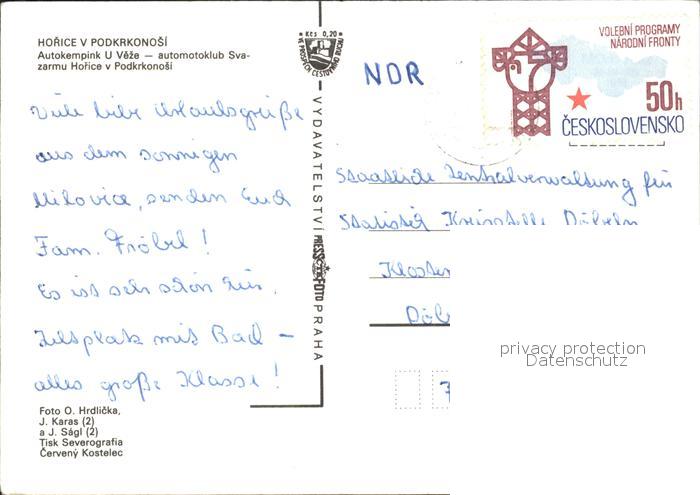 old postcard Tschechische Republik Podkrkonosi Camping Schwimmbad postalisch gelaufen Erhaltung siehe scans