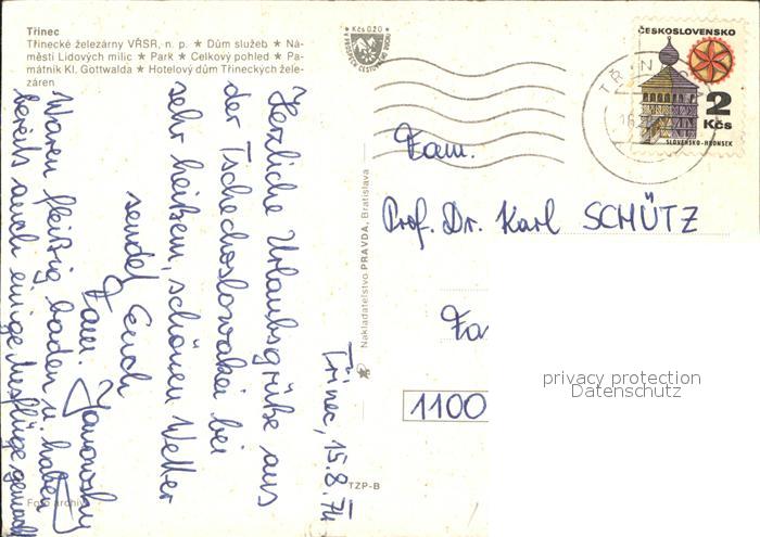 old postcard Tschechische Republik Trinec Wappen Denkmal Stadt postalisch gelaufen Erhaltung siehe scans