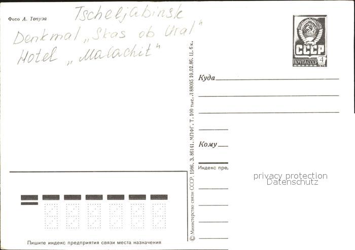 Tscheljabinsk Denkmal Skas ob Ural Hotel Malachit postalisch nicht gelaufen Erhaltung siehe scans