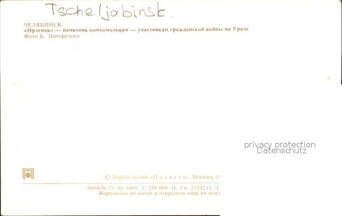 Tscheljabinsk Denkmal postalisch nicht gelaufen Erhaltung siehe scans