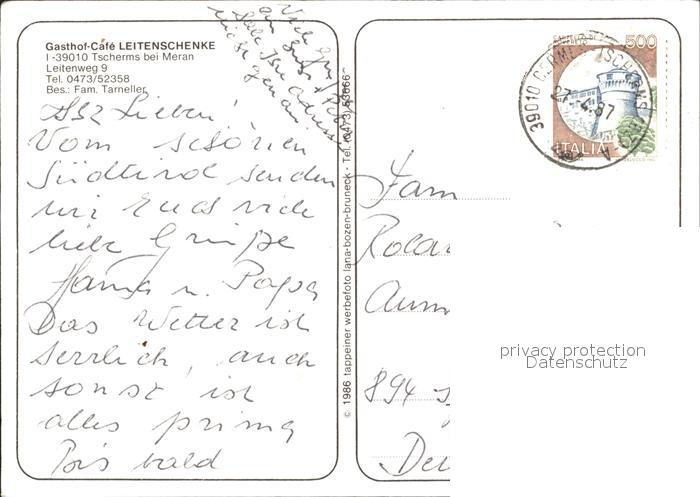 old postcard Tscherms Gasthof Cafe Leitenschenke postalisch gelaufen Erhaltung siehe scans